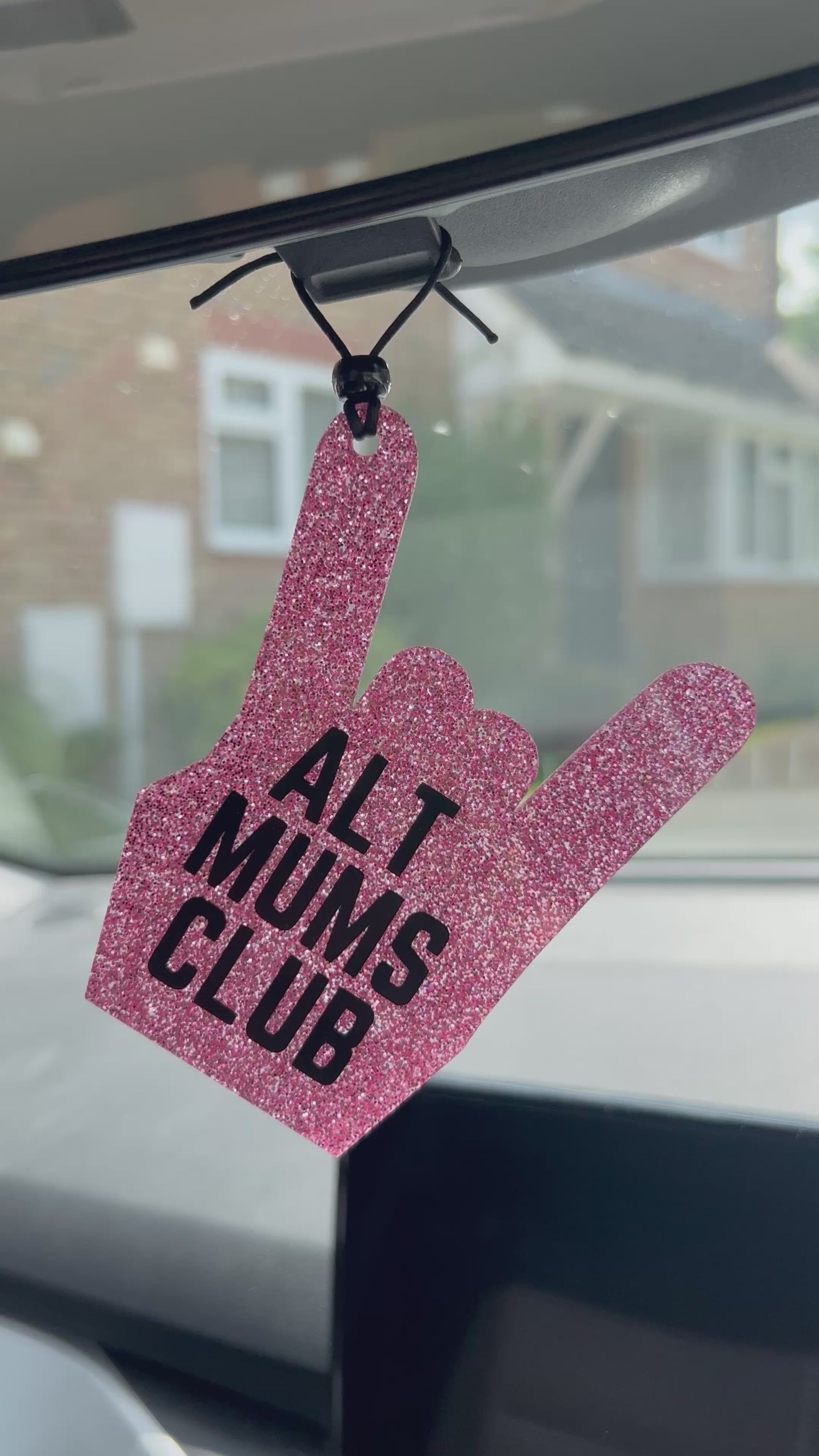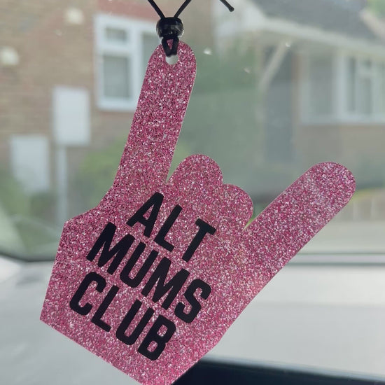 Turn up the volume on your car’s personality with the ALT MUMS CLUB Rear View Mirror Charm. Designed for mums who rock as hard as they roll, this bold accessory features a glittery pink rock hand and a statement-making “ALT MUMS CLUB” print.
