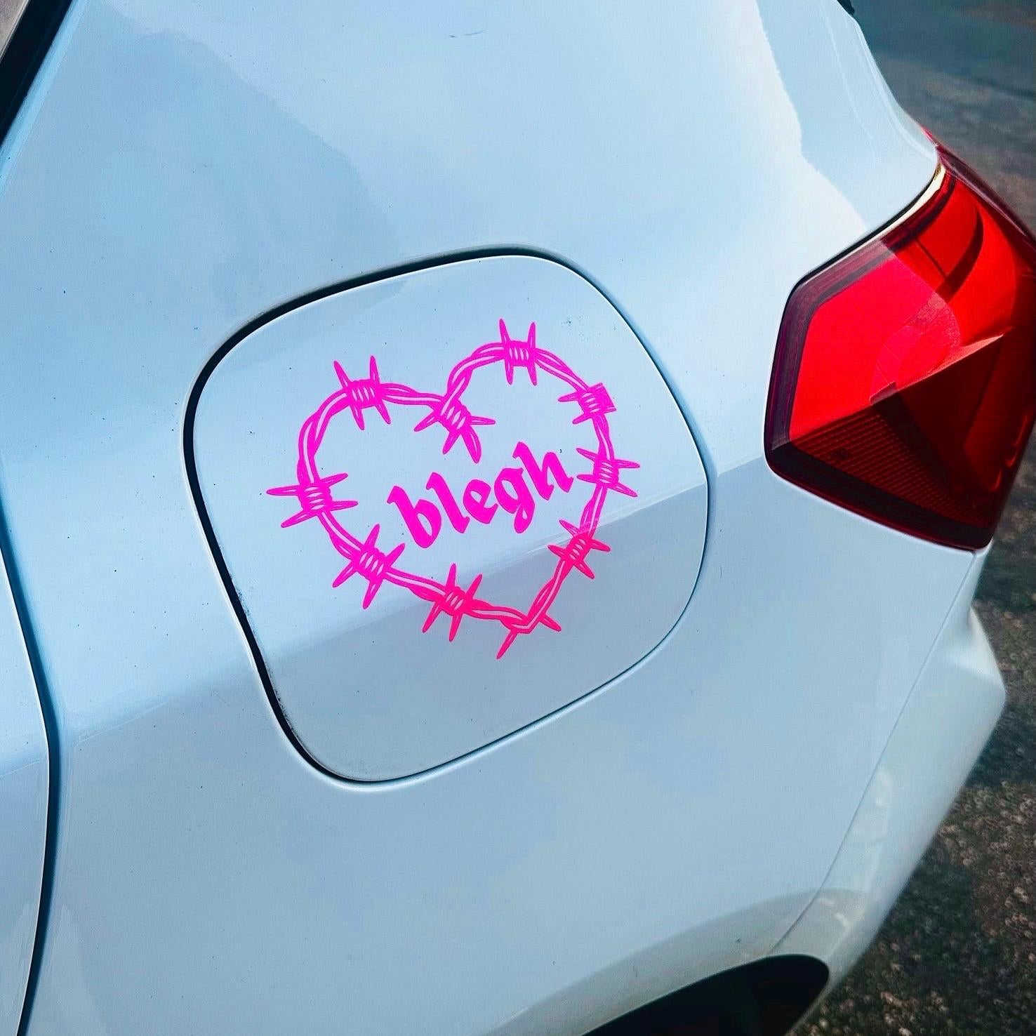 "Blegh" car decal sticker, available in a range of colours and sizes. The perfect addition to your car to let other drivers know the kind of music you love!