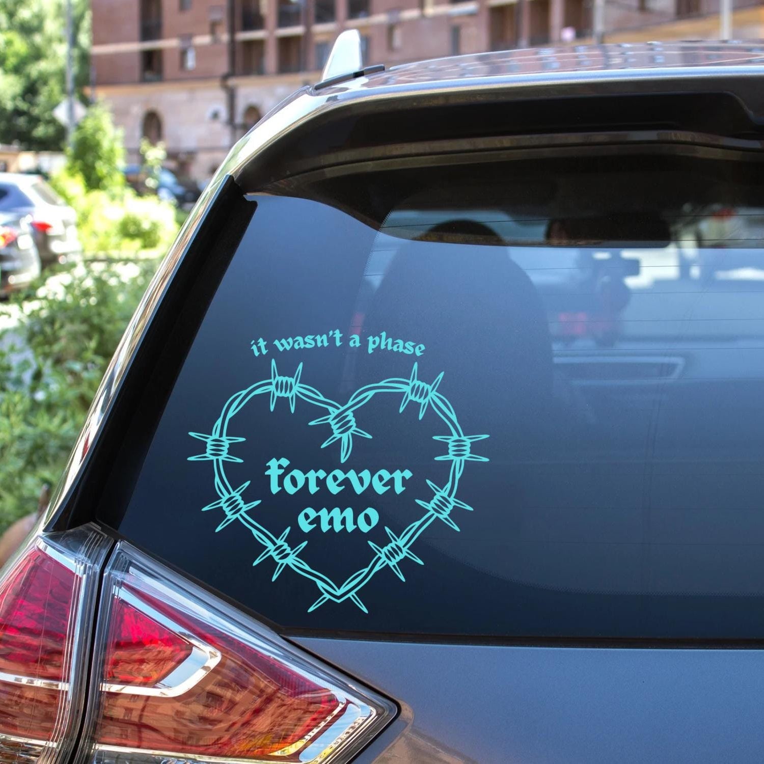 "Forever emo" car decal sticker, available in a range of colours and sizes. The perfect addition to your car to let other drivers know the kind of music you love!