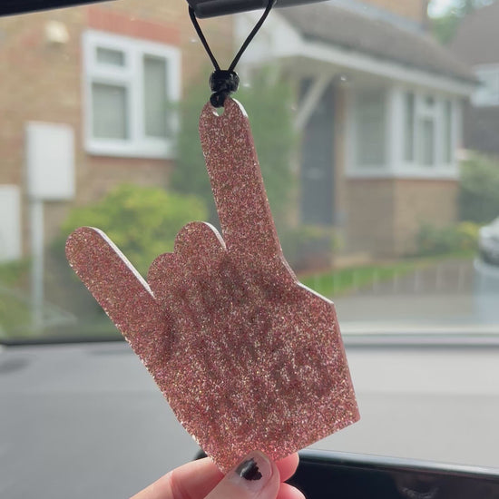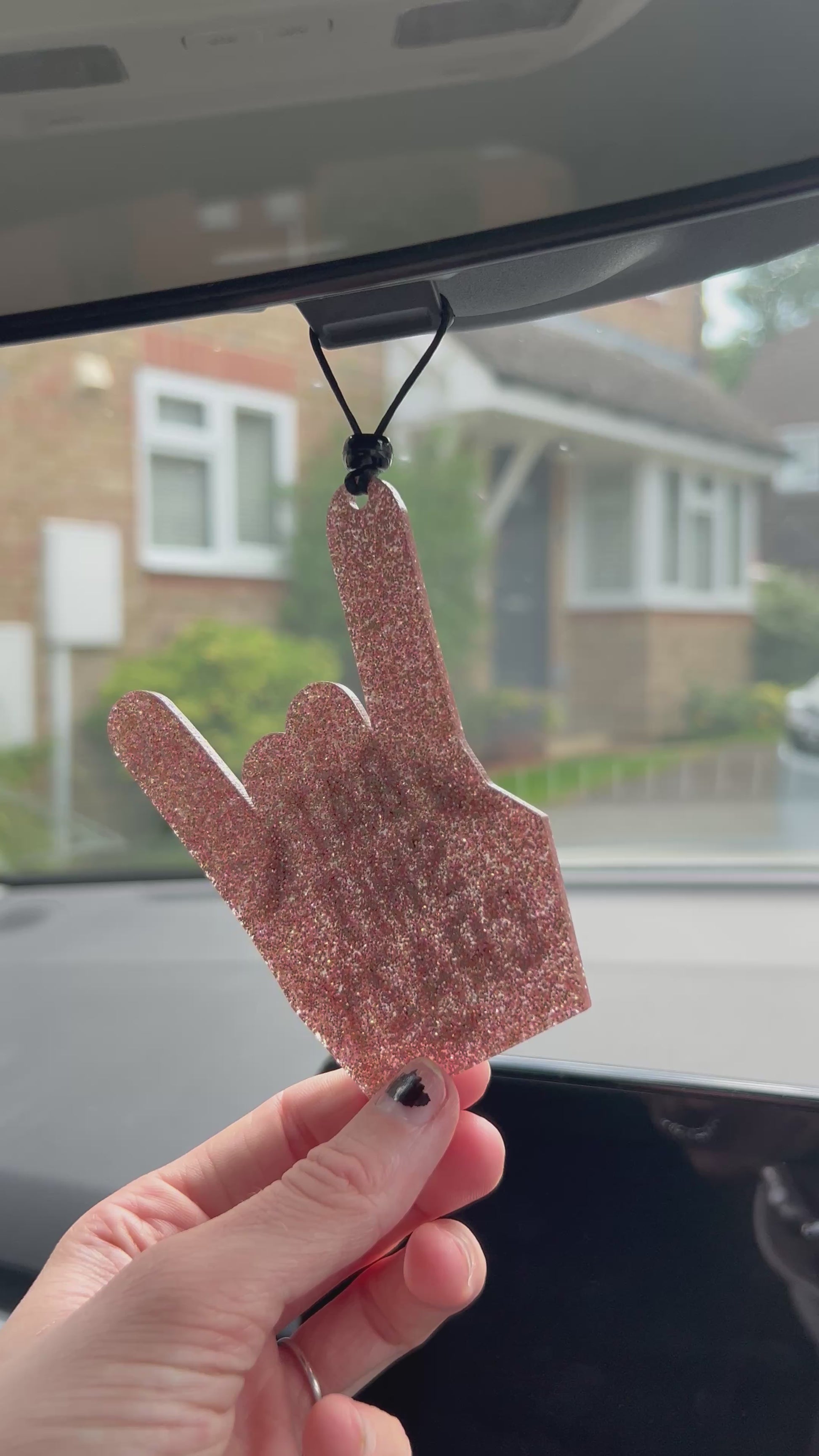 Turn up the volume on your car’s personality with the Bat Shit Crazy Rear View Mirror Charm. Designed for those who are just a little bit crazy. this bold accessory features a glittery rose gold rock hand and a statement-making wording.
