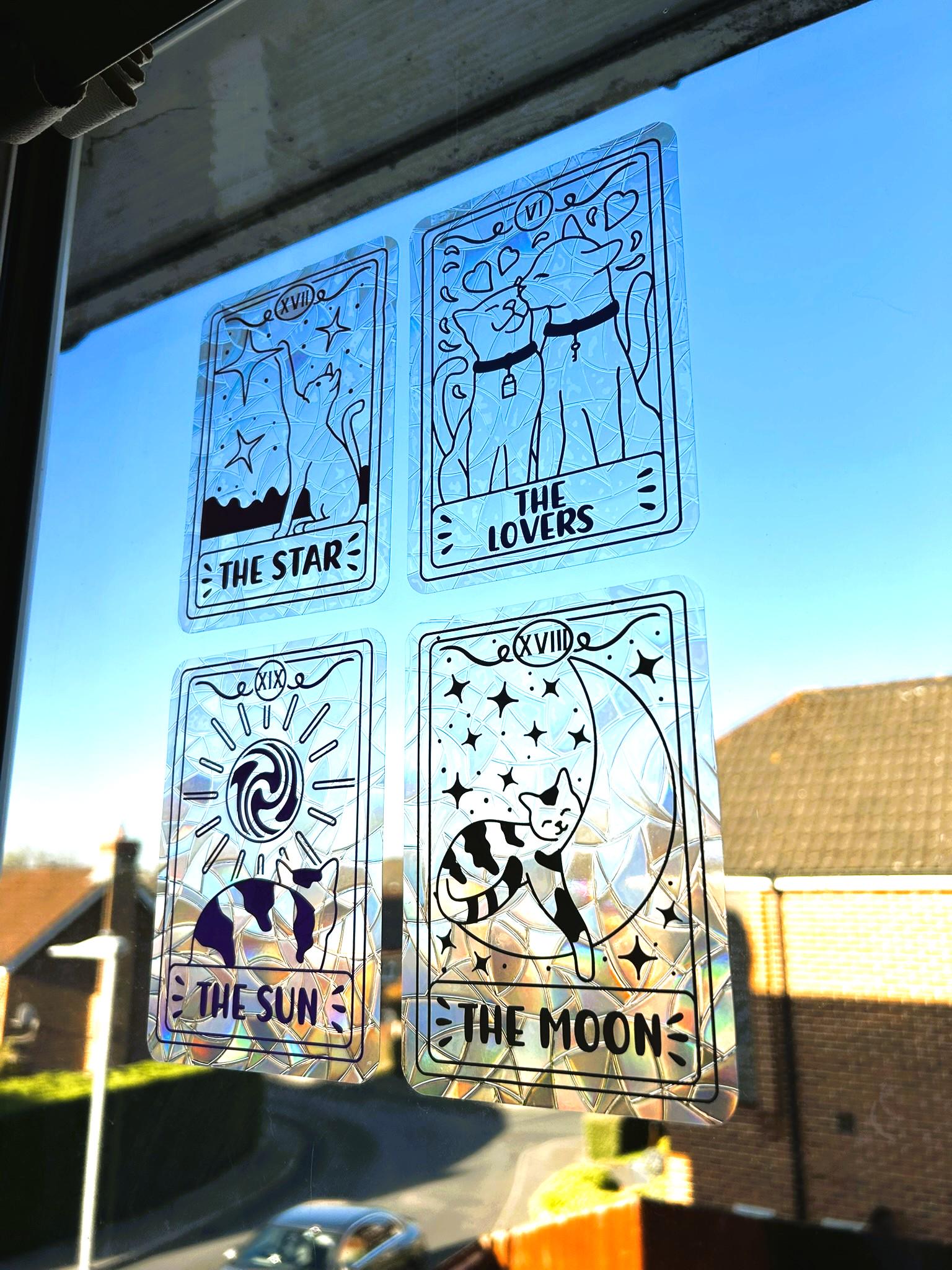 A super cute suncatcher window sticker with a tarot card inspired design, ideal for any home window! When the sun shines through the window, you will be blessed with gorgeous rainbows!