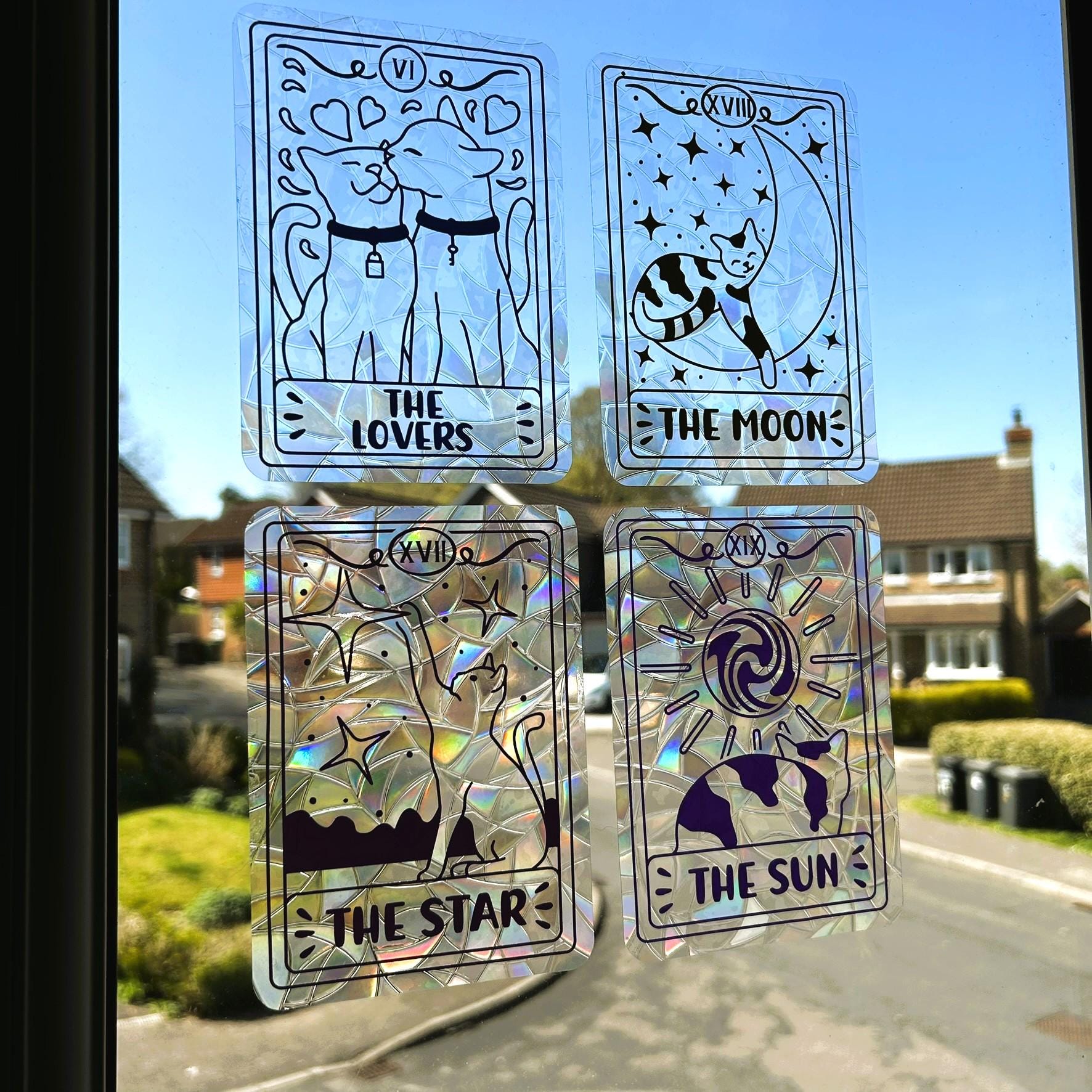A super cute suncatcher window sticker with a tarot card inspired design, ideal for any home window! When the sun shines through the window, you will be blessed with gorgeous rainbows!