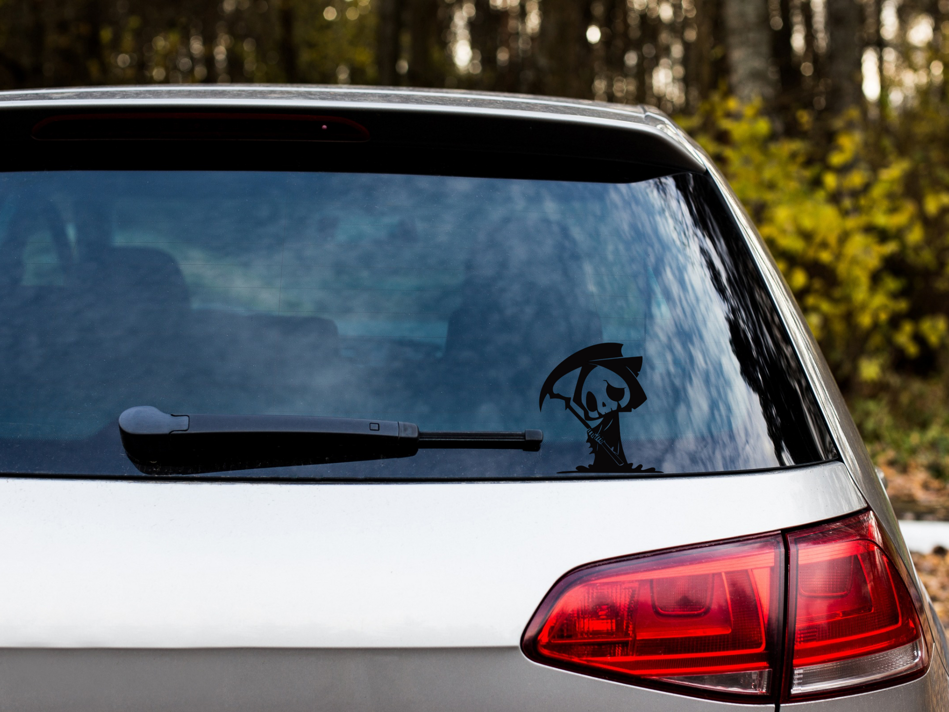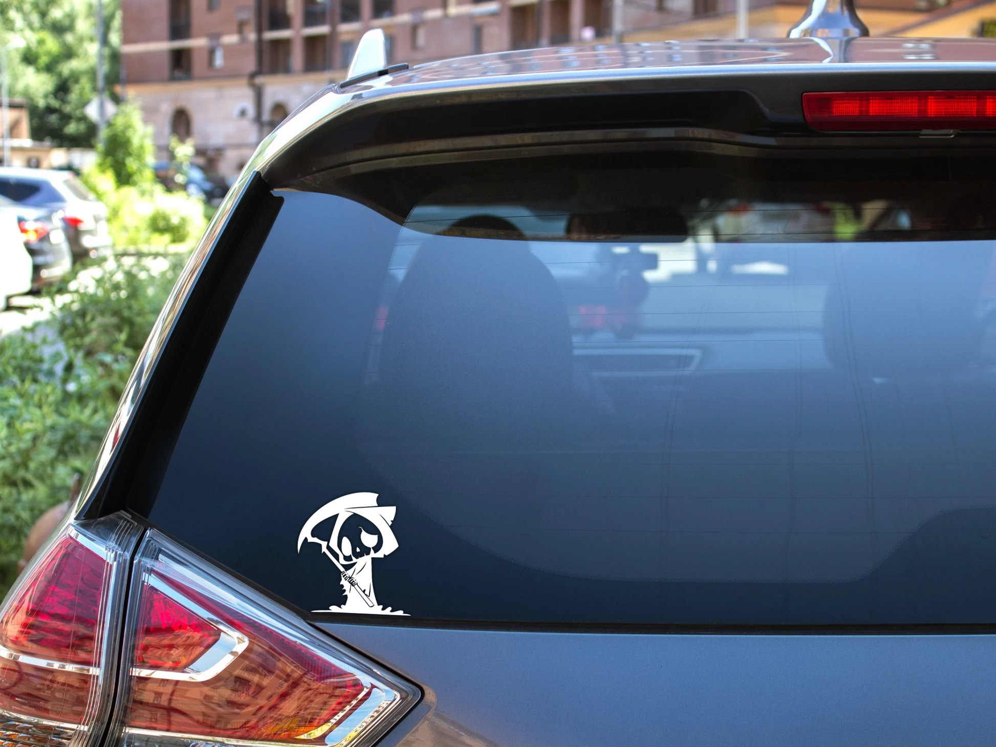 Grim reaper style car decal sticker, available in a range of colours and sizes.