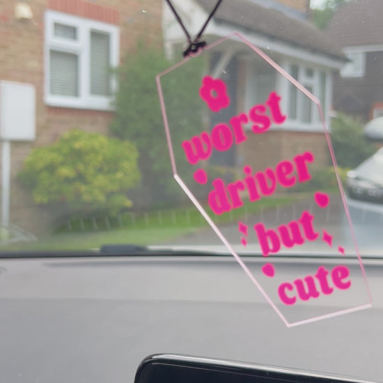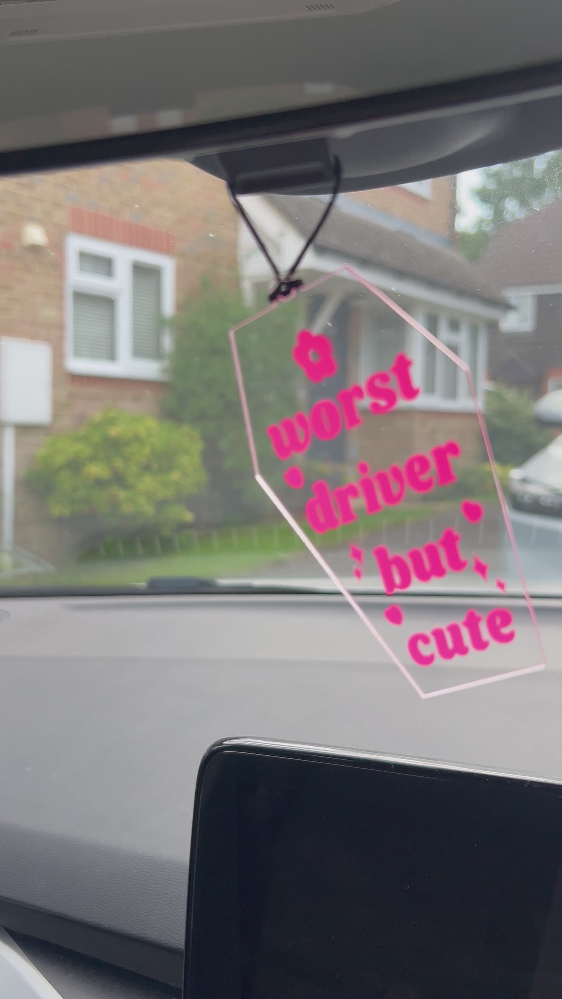 Who says bad driving can’t be adorable? The Worst Driver But Cute Rear View Mirror Charm is the perfect blend of sass, humor, and gothic flair. Shaped like a sleek black coffin and adorned with bold pink lettering, it’s your unapologetic reminder that style always comes first.